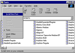 c. It will open the fonts window. Go to File and select Install New Fonts.